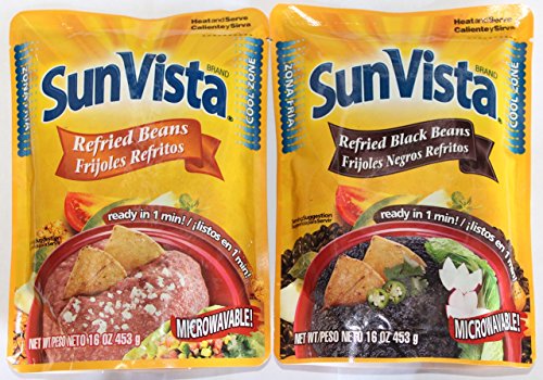 Sun Vista Refried Beans & Refried Black Beans Duo,16 oz.Microwavable Pouches (Pack of 6 )