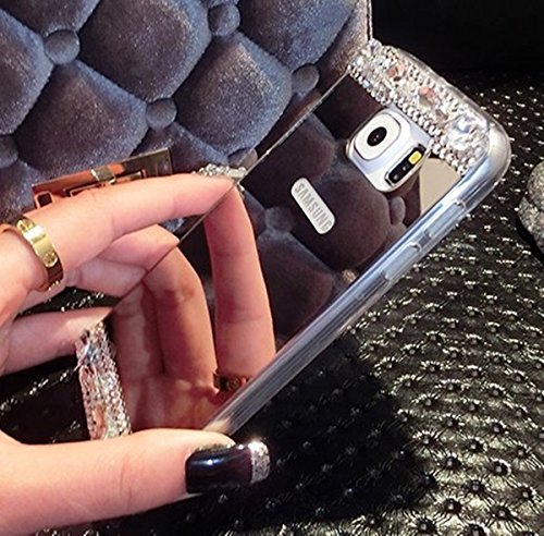 Galaxy S7 Edge Case,Inspirationc® Beauty Luxury Diamond Hybrid Glitter Bling Soft Shiny Sparkling with Glass Mirror Back Plate Cover Case for Samsung Galaxy S7 Edge--Black Diamond