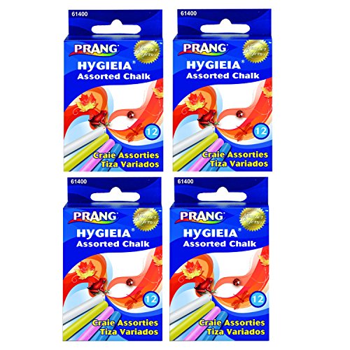Prang Hygieia Chalk, 3.25 x .375 Inch Chalk Sticks, 12 Count, Assorted Colors (61400) (4-Pack)