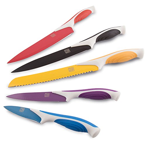 MEGALOWMART Set of 5 Colored Stainless Steel Multicolored Knife Set Cutlery Kitchen Knives