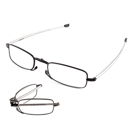 DoubleTake 2 Pairs of Compact Folding Reading Glasses with Mini Flip Top Carrying Case for Men and Women