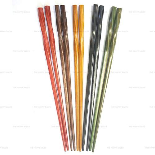 Happy Sales 5 Pairs Spiral Wooden Chopstick Set Multi Color