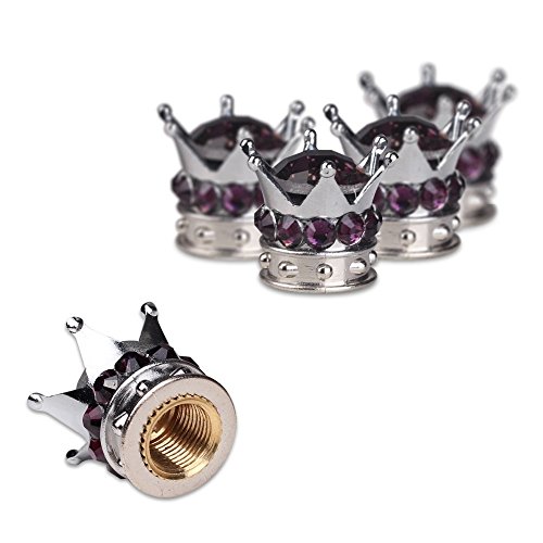 Mini-Factory Chrome Tire Valve Stem Caps Bling Rhinestone Tire Caps for Car and Motorcycle (Purple)