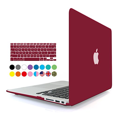 iBenzer - 2 in 1 Soft-Skin Smooth Finish Soft-Touch Plastic Hard Case Cover & Keyboard Cover for Macbook Air 13.3'' (Model: A1369 / A1466), Wine MMA13WR+1