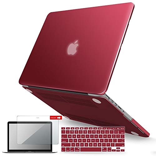 iBenzer MacBook Pro 13 Inch Case 2012-2015, Soft Touch Hard Case Shell Cover with Keyboard Cover Screen Protector for Apple MacBook Pro 13 with Retina Display A1425 1502,Wine Red,MMP13R-WR+2