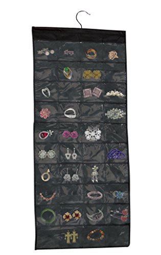 Hanging Dual Sided Space-Saving Jewelry Organizer,Black