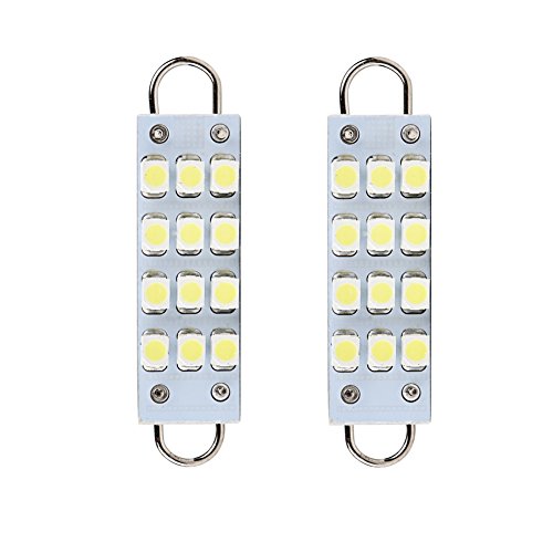 HOTSYSTEM New Bulbs 12 SMD Festoon Lights Bright White LED 42mm to 44mm Rigid Loop 2-packs
