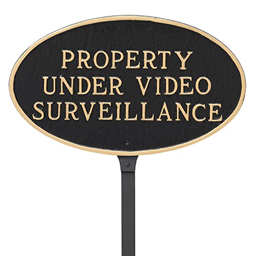 Montague Metal Products 6" x 10" Property Under Video Surveillance Statement Plaque with 23" Stake, Black/Gold