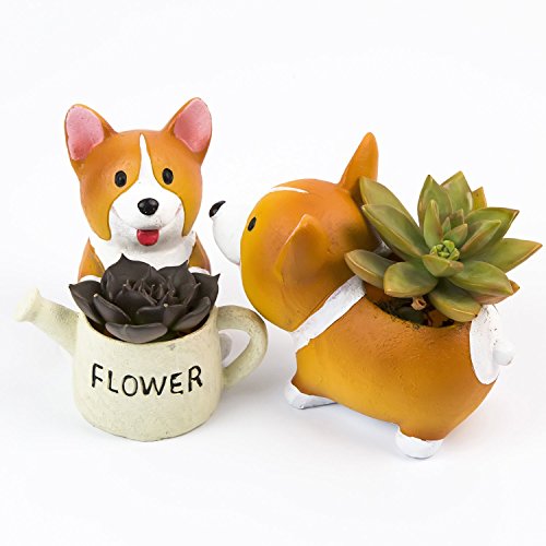 Zaray Lovely Corgi Dog Shaped Artificial Flowers Succulent Plants Pot, Set of 2