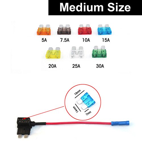 E-KYLIN Car Motor ADD Circuit Blade Style Fuse Adapter Cable Add-A-Circuit Fuse Holder APS ATT LOW PROFILE ATM LP FUSETAP TAP with 7 Fuses Set 5, 7.5, 10, 15, 20, 25, 30 AMPS - Standard Medium Size