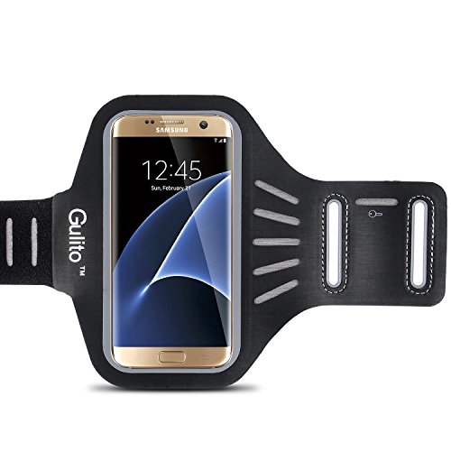 Samsung Galaxy S7 Armband, Gulito Armband for Galaxy S7 - Lightweight & Adjustable with Key Holder & Card Slot, Ideal for Workout, Hiking, Jogging, Gym, Running or Other Sports (Black)