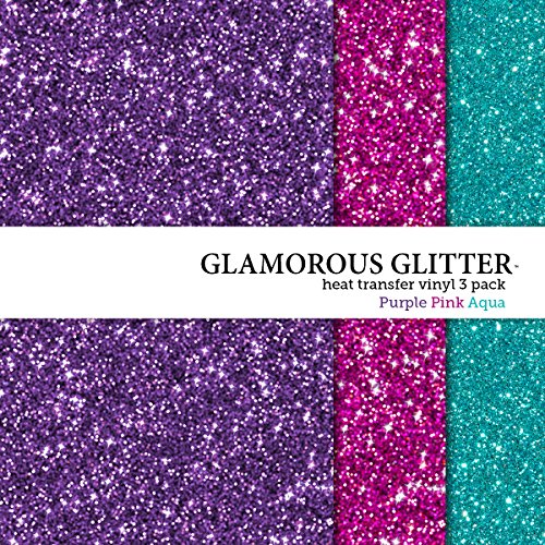 Glamorous Glitter Heat-Transfer Vinyl Multi-Pack 3 Sheets Purple, Pink, and Aqua 10"x10" for Vinyl Cutters