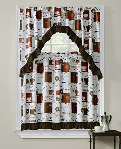 GoodGram Cappuccino Three Piece Tier and Swag Kitchen Curtain Set Assorted Colors (Multi)