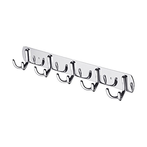 E-UNIONA Stainless Steel Wall Mounted 5 Double-Hook Organizer Rack Heavy Duty Robe Coat Clothes Hat Hanger Organizer Rack