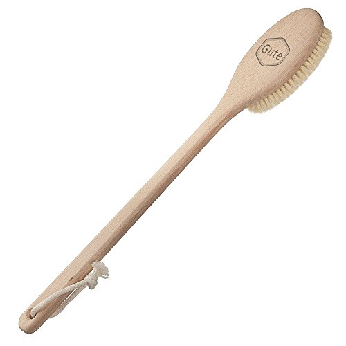 Gute Extra Long Bath and Shower Brush, Made With Pig Bristle Fibers And A Beechwood Handle 19-1/2 Inches Long, Made In Germany