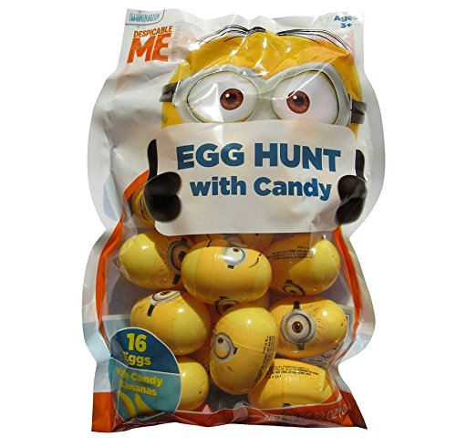 Illumination Minions Despicable Me Yellow Plastic Easter Egg Hunt with Candy Bananas, Pack of 16 Minion Eggs