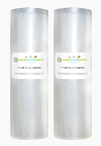 2 Pack of Vacuum Sealers Unlimited - 11" x 50' Rolls For FoodSaver, etc. - Thicker, Heavy-Duty Commercial Quality Textured Vacuum Sealer Bags - BPA Free & FDA Approved