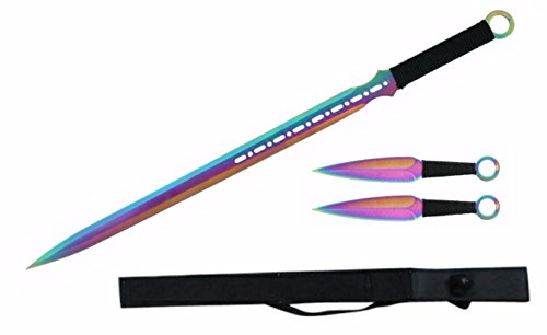 27" Ninja Sword Machete Throwing Knife Full Tang Tactical RAINBOW Katana XMAS