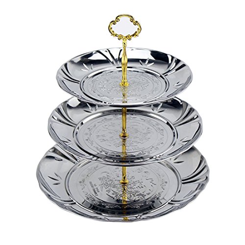 Fruit Cake Buffet Plates, Petforu 3-Tier Stainless Steel Candy Dessert Cupcake Fruit Plate Stand Plum Blossom Design