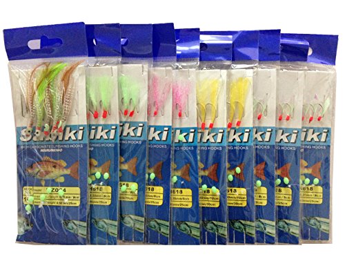 JT-Amigo Assorted 10 Packs Freshwater/Saltwater Fishing Sabiki Bait Rigs Fish Skin/feather Hooks