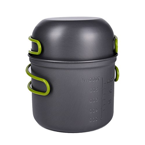 EZsport Outdoor Camping Cooking Pan Set, for Hiking and Backpacking, Cooking Picnic Bowl Pot Pan Set, Green Silicon Handle, Gray Color