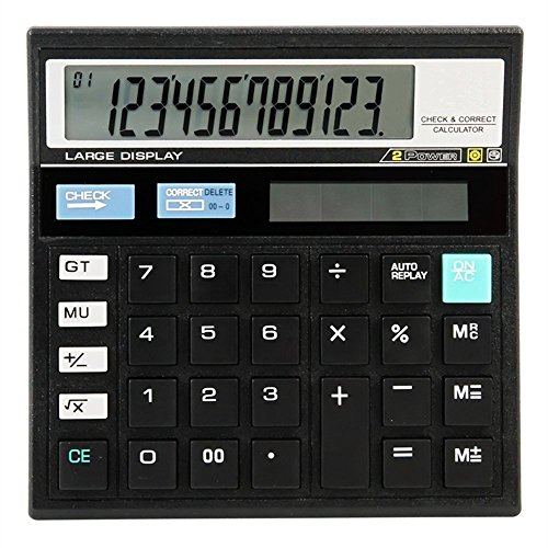 MyLifeUNIT 12-Digit Check and Correct Desktop Calculator, Solar and Battery 2-Way Power Large Display Calculator