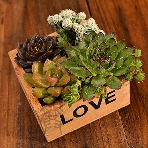 Beautiful 4pcs Different Succulents Plant with Wooden Love Flower Pot Microlandschaft Creative Decorative Planter Pot, DIY Succulents Kit