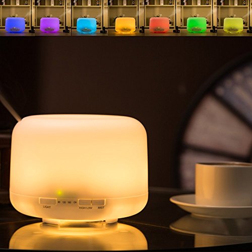 Erin 500ml Aromatherapy Essential Oil Diffuser Ultrasonic Air Humidifier with 4 Timer Settings 7 LED Color Changing Lamps, 10 Hours Running and AUTO shut off
