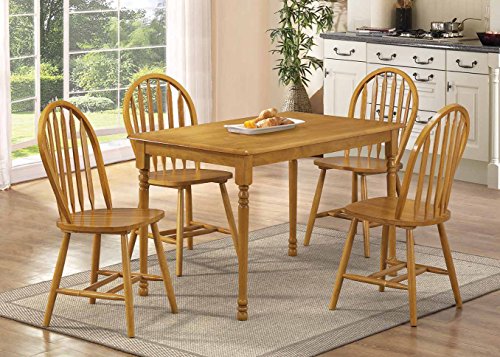 5 Piece Spiced Oak Solid Wood Dining Table (36”x60”x30”H) (4 Spiced Oak Solid Wood Windsor Back Chairs included) (Spiced Oak)