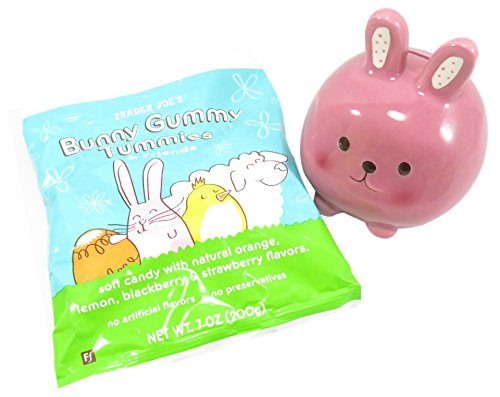 Trader Joe's Bunny Gummy Tummies & Friends with 4" x 4" Pink Bunny Bank