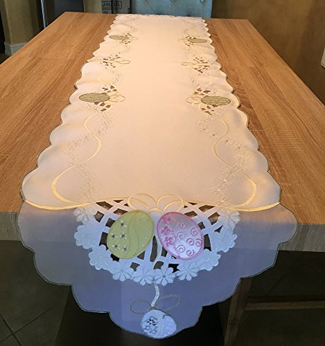 Easter Egg Table Runner with Cutouts and Sheer Fabric at Both End, Tip Finish - 16 x 67 in