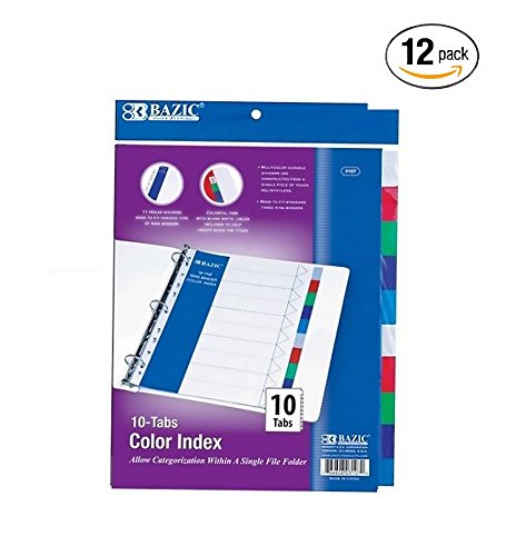 Bazic 3-Ring Binder Dividers with 10 Color Tabs - 12 Pack