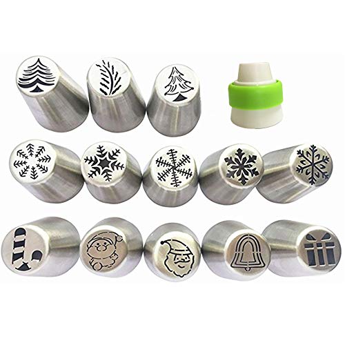 NEW Russian Piping Tips Xmas Design 14pcs/Set -13 Russian Tips +1 Coupler/ Large Size Icing Piping Nozzle Tips