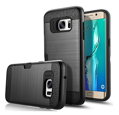 S7 Edge Case,EloBeth Resistant Protective Shell Galaxy S7 Edge Wallet Cover Shockproof Rubber Bumper Case Anti-Scratches Hard Cover Skin with Card Slot Holder for Samsung Galaxy S7 Edge Black