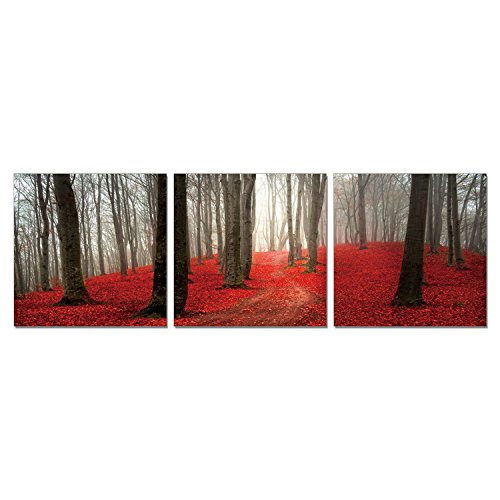 FURINNO Photography Triptych Print, 72"x24" MDF+XPS Frame, Dawn Forest