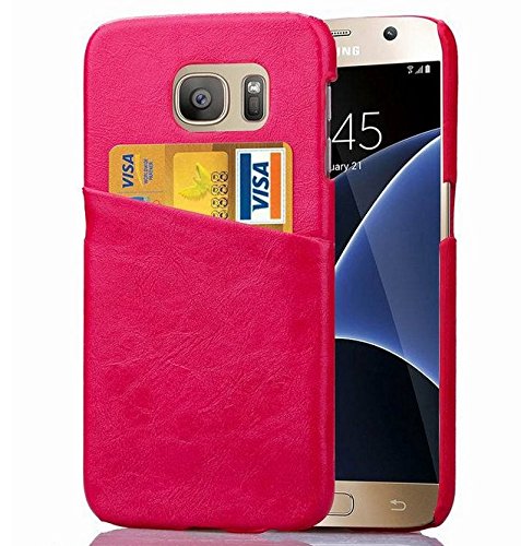 Samsung S7 Cover-Aurora Rose Red Ultra Slim Hybrid PU Leather Wallet Stand Case Credit Card ID Holder Bumper Case for Galaxy S7