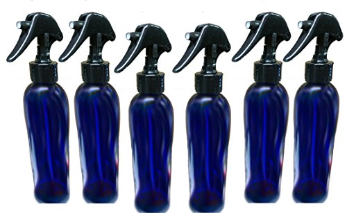 6 Pack of 8 oz Spray Bottle Blue Cobalt Round Plastic Black Trigger Sprayer Salon