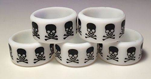 Vape Rings 5 pack Silicone Bands Skull and Crossbones for RDA, RTA, Tanks, and Mods (White)