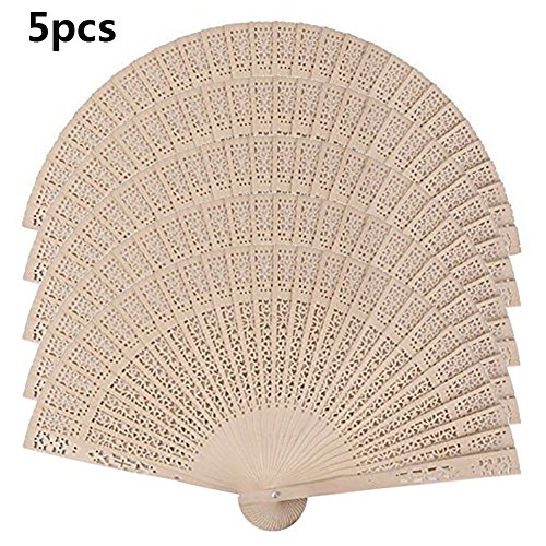 Smartlife15 5Pack Chinese Folding Sandalwood Carved Hand Fan for Wedding Bridal Party