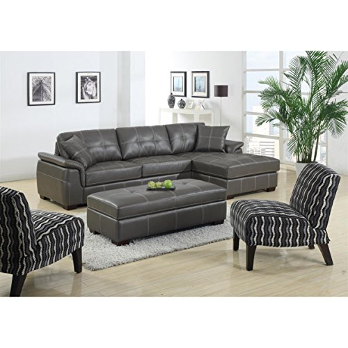 Emerald Home Manhattan Gray Sectional, with Pillows, Faux Leather Upholstery, 8 Way Hand Tied Pocket Coil Springs, And Button Tufting