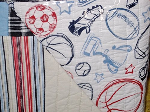 STANDARD BLUES reversible FULL/QUEEN Size SPORTS quilt set (includes 2 sham) - baseball, football, basketball