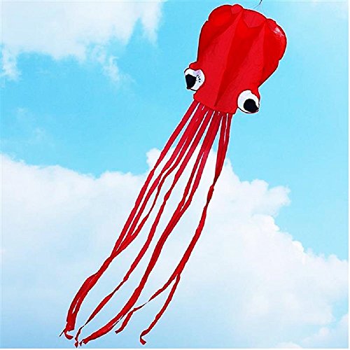 EVINIS Kite-Beautiful Large Easy Flyer Kite for Kids - Nylon Cloth 4m Power Red Octopus Software Kite With Handle And Line
