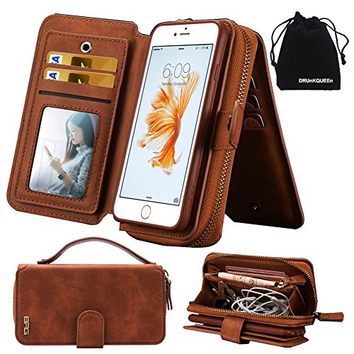 iPhone 6s Case, iPhone 6 Case, Premium for Women/Men Zipper Wallet Leather Detachable Magnetic Cases Purse Clutch Removable Case with Black Flip Credit Card Holder Cover for iPhone6 iPhone6s (4.7")