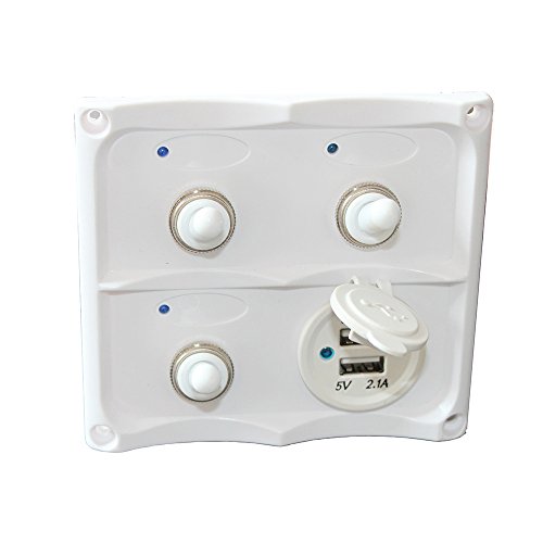 X-Haibei Marine Electric Blue LED Toggle Switch Panel 3 Gang with Dual USB Charger