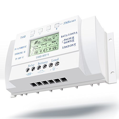 Y-SOLAR 40A Solar Charge Controller Time-Interval Control with LCD Display 12V/24V Solar System with 5V Mobile Charger Solar Controller