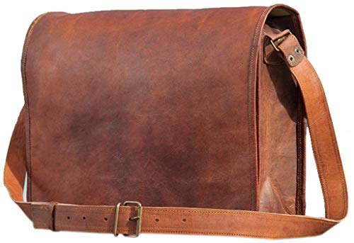 Phoenix Craft 18' Vintage Large Leather Bag Laptop Shoulder Bag messenger satchel bag Crossbody Shoulder Bag Purse 18x3x6 Inches Brown
