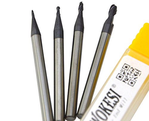 Wokesi 0.5 0.75 1 1.5mm Radius,Ball Nose End Mill Set,Pack of 4,Std Length,HRC45,2Flutes,TiAlN Coated,Metric,Solid Carbide,CNC Router Bits Profiling Milling Cutting Tools (R0.5+R0.75+R1+R1.5 HRC45)