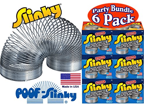 POOF-Slinky Model #100 Original Metal Slinky (Silver) Party Set Bundle - 6 Pack