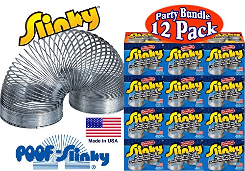 POOF-Slinky Model #100 Original Metal Slinky (Silver) Party Set Bundle - 12 Pack