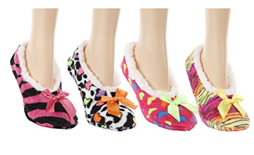 4pk Women's Warm & Cozy Feet Fuzzy Slippers Non-Slip Lined Socks Booties Indoor